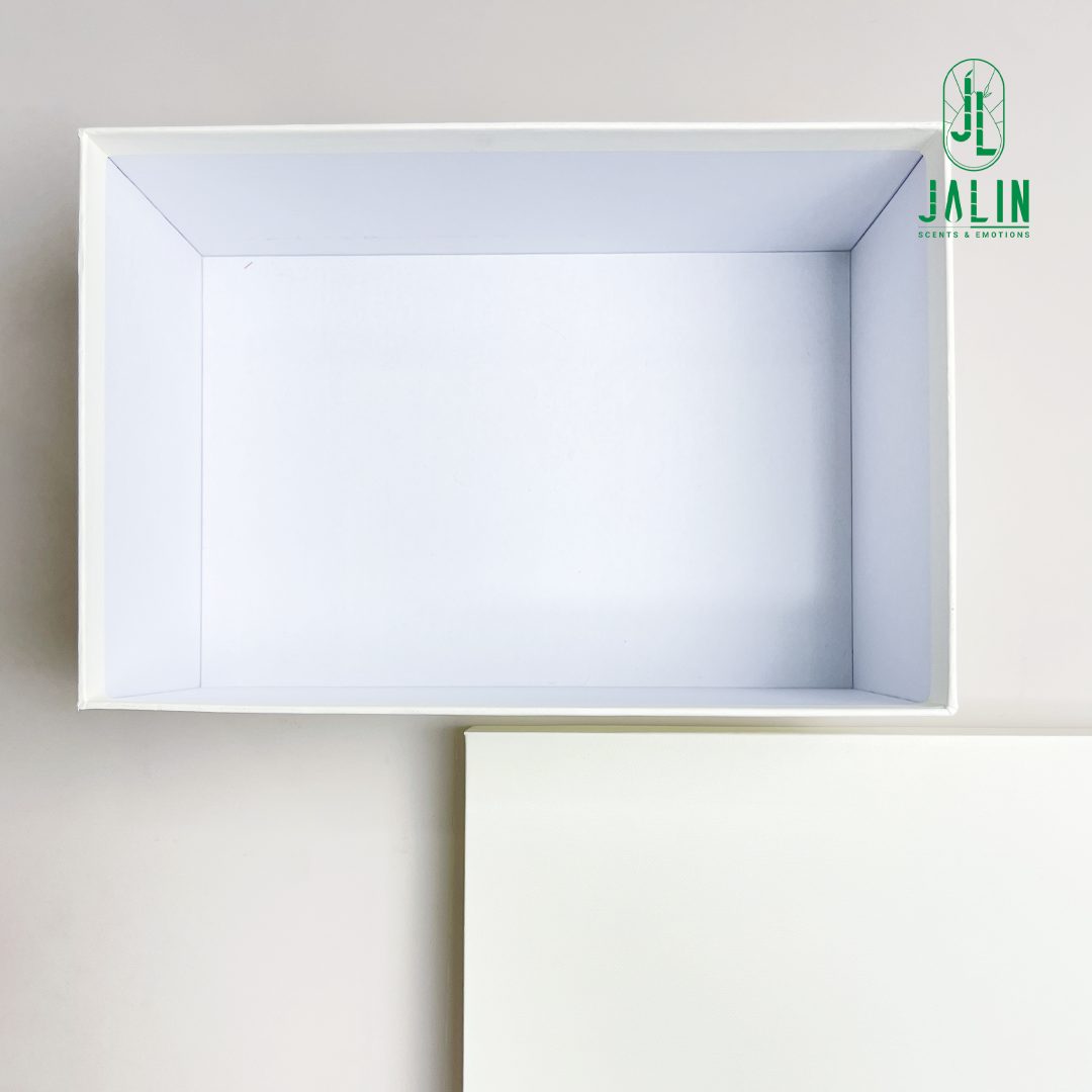 Hộp quà tặng cao cấp âm dương chữ nhật tinh tế, sử dụng bìa cứng 3 lớp bồi giấy mỹ thuật, mang đến vẻ ngoài sang trọng và độ chắc chắn cao.