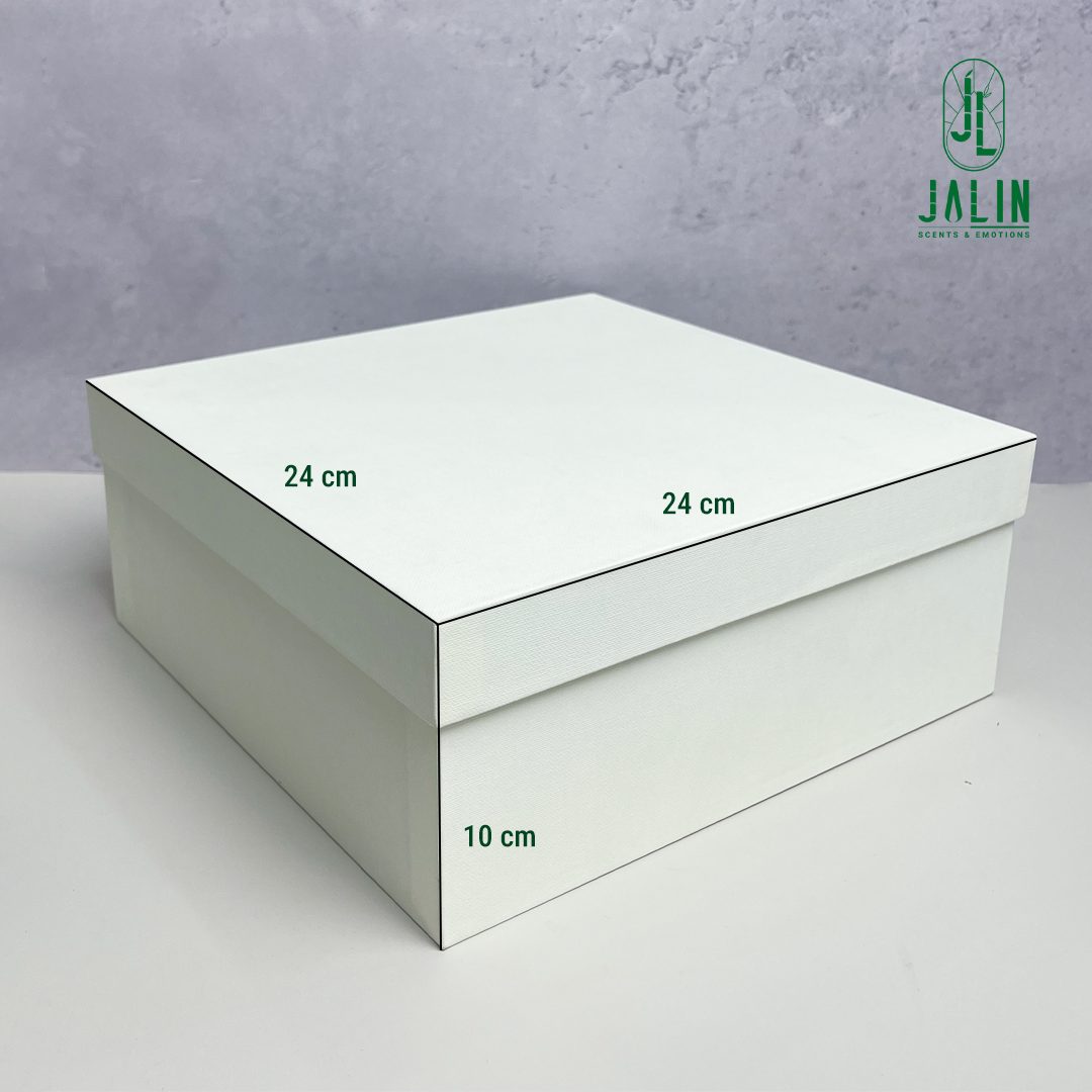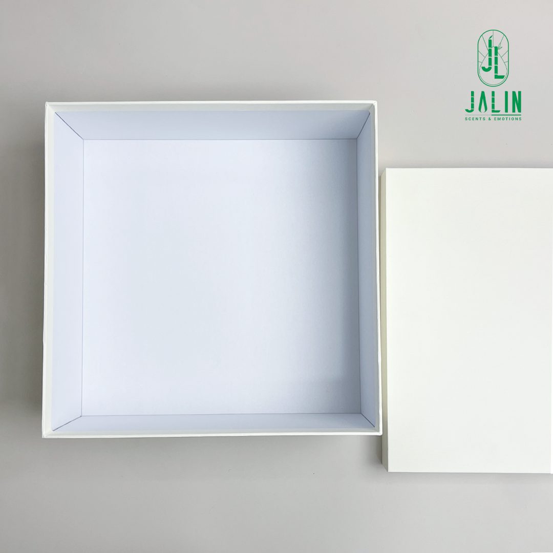 Với kích thước 25 x 25 x 10 cm, hộp có không gian rộng, phù hợp để sắp xếp nhiều sản phẩm như nến thơm, tinh dầu, nước hoa hoặc các set quà tặng theo concept riêng. Kiểu dáng vuông vức, cân đối giúp việc bố trí sản phẩm trở nên gọn gàng và đẹp mắt hơn.