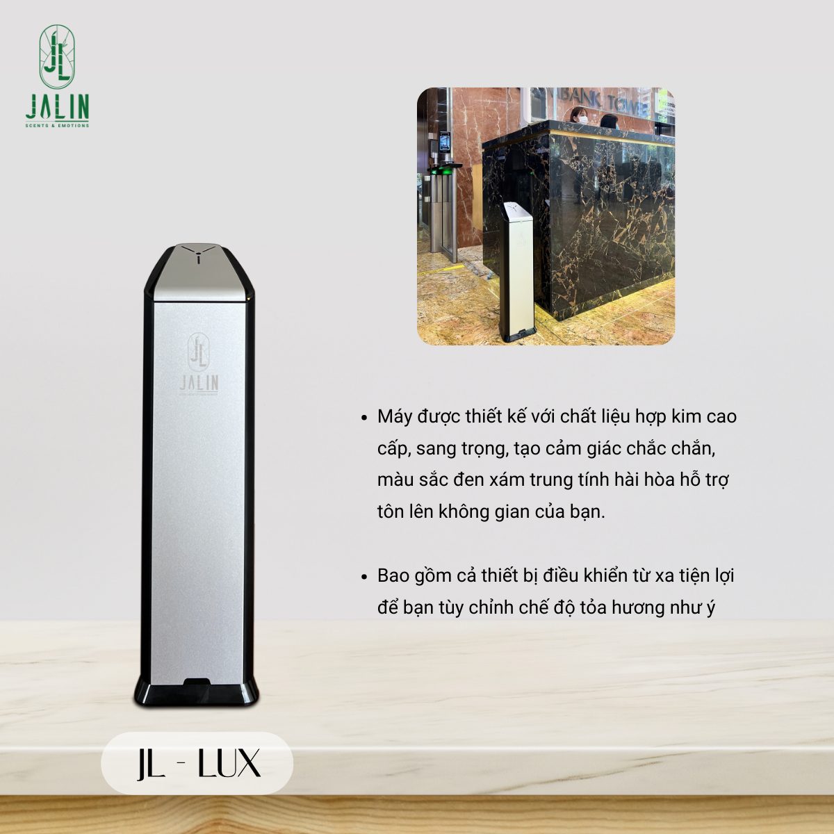 JL Lux - thiết bị tỏa hương chuyên nghiệp cho không gian sống đẳng cấp. Hãy lựa chọn hương thơm từ Bộ sưu tập tinh dầu hương thơm nguyên chất Lux để tạo thành combo hoàn hảo, tôn lên bản sắc và không gian của bạn giúp bất cứ ai đã va phải sẽ mãi ấn tượng khó phai.