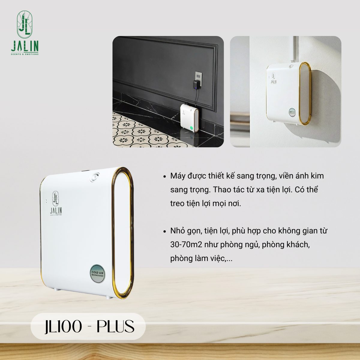 Để đáp ứng nhu cầu khuếch tán hương của những không gian như phòng khách, phòng ngủ, phòng làm việc, hay các không gian doanh nghiệp nhỏ (từ 30-70m2), nhà Jalin đã cho ra mắt máy JL100-PLUS với đầy đủ các tính năng và công nghệ hiện đại để mang đến những trải nghiệm sống tuyệt vời nhất.