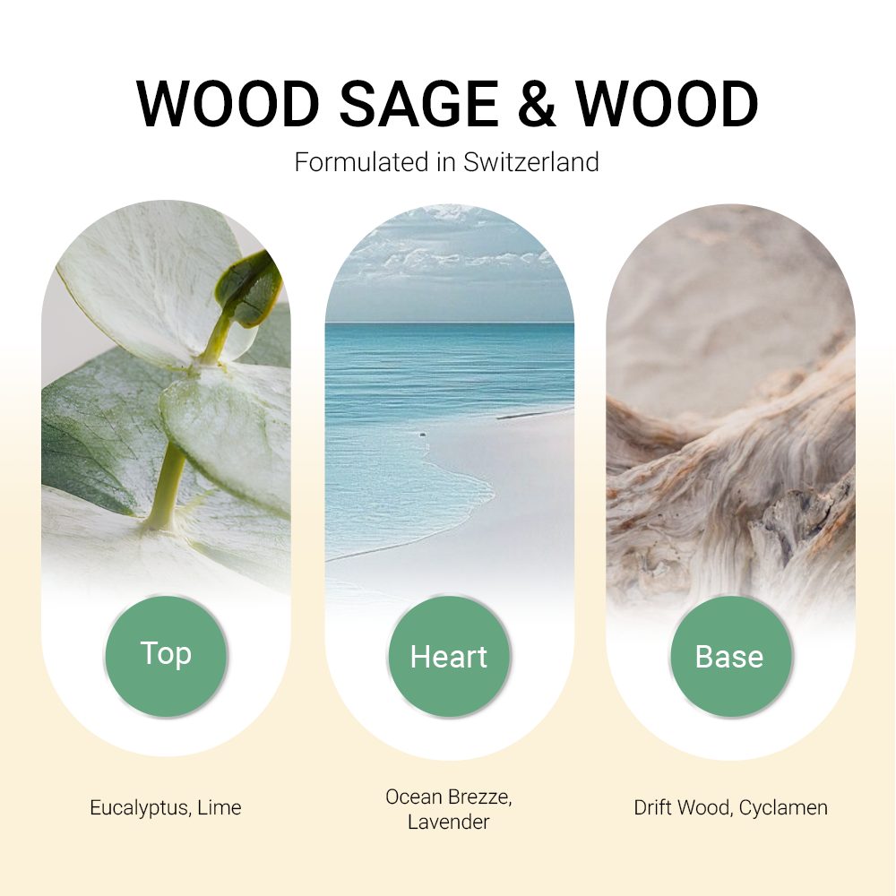 - Wood Sage & Wood được tạo ra với mục đích gợi lên cảm giác sảng khoái, tự do và hòa mình vào thiên nhiên, lấy cảm hứng từ nét độc đáo và thoáng đãng của bãi biển tại Anh Quốc.